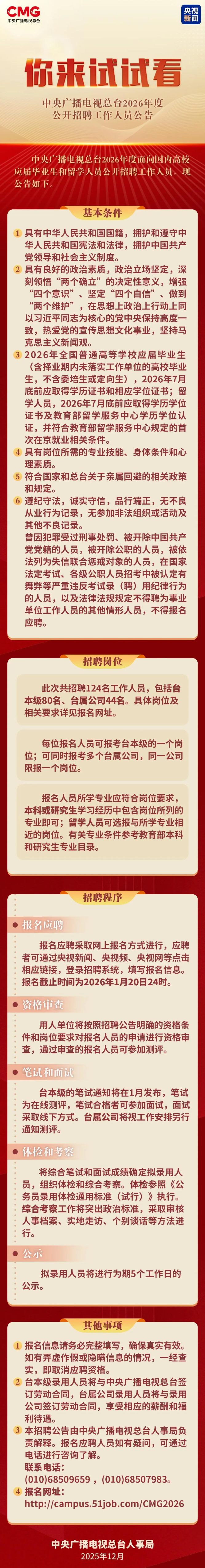 中央广播电视总台2026年度公开招聘工作人员公告