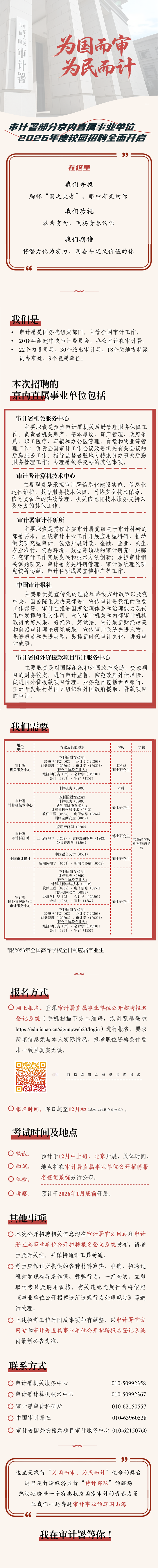 审计署京内直属事业单位2026年度公开招聘应届毕业生