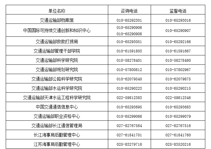 (五)交通运输部所属事业单位2026年度统一公开招聘工作技术咨询电话:010-65299061、010-65299059。
