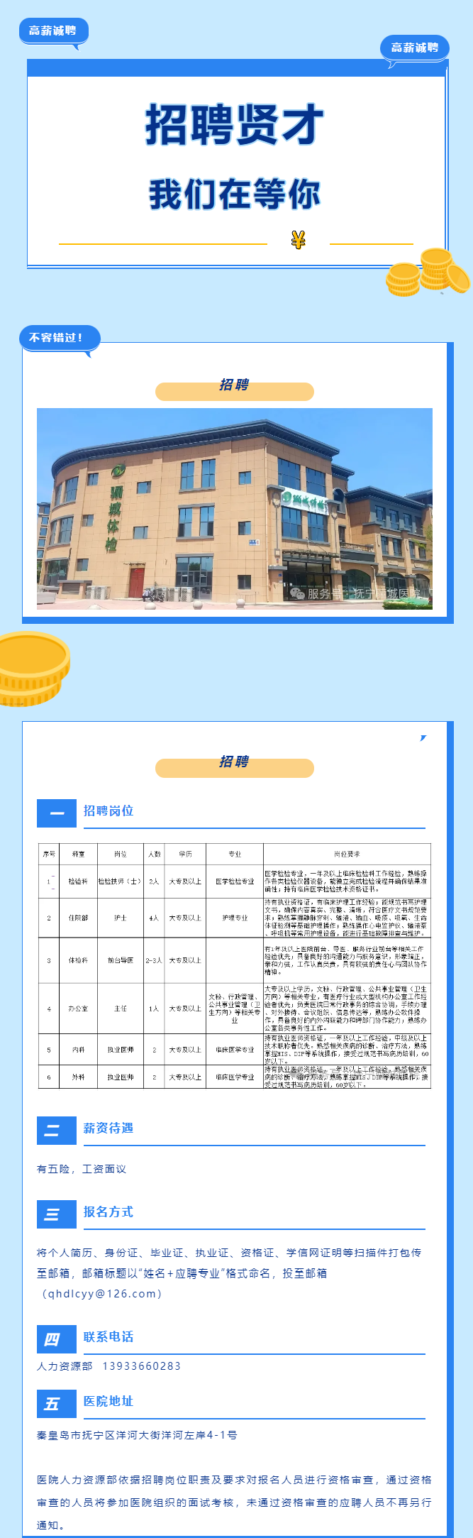 河北秦皇岛骊城医院招聘启事 时间:2026-03-20 10:25 作者:吴老师 半月讲坛温馨提示:信息均转载自官方网站,仅供参考,不构成相关服务。其最终解释权归相关单位所有,如对信息有疑问,请直接与相关单位联系。转载目的在于信息传递,我司不承担此类稿件其他行为的连带责任,如有侵权或需删除请联系我们。因此带来的不便敬请谅解! (责任编辑:吴老师) 上一篇:河北沧州任丘康济新图医院招聘公告 下一篇:北京市海淀区海淀街道社区卫生服务中心2026年招聘公告