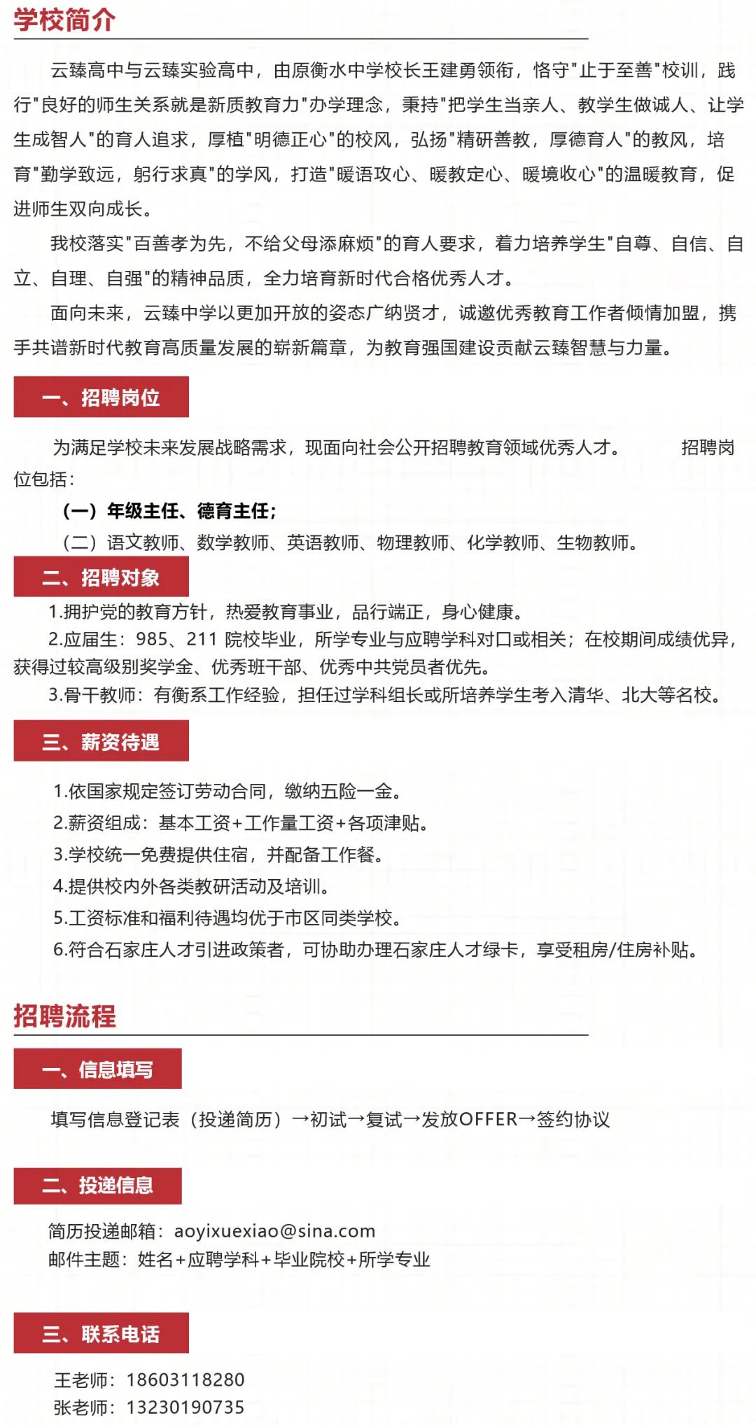 石家庄云臻高中,云臻实验高中联合招聘公告 时间:2026-03-23 13:58 作者:小乔老师 半月讲坛温馨提示:信息均转载自官方网站,仅供参考,不构成相关服务。其最终解释权归相关单位所有,如对信息有疑问,请直接与相关单位联系。转载目的在于信息传递,我司不承担此类稿件其他行为的连带责任,如有侵权或需删除请联系我们。因此带来的不便敬请谅解! (责任编辑:小乔老师) 上一篇:唐山市市直中小学2026年公开选聘教师公告 下一篇:通州区教委所属事业单位2026年第二次公开招聘工作人员公告