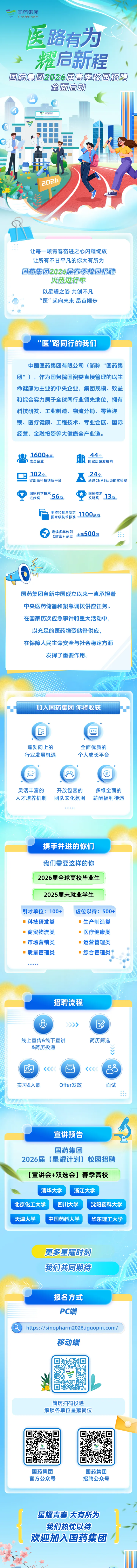 国药集团2026届春季校园招聘 时间:2026-03-25 11:02 作者:吴老师 半月讲坛温馨提示:信息均转载自官方网站,仅供参考,不构成相关服务。其最终解释权归相关单位所有,如对信息有疑问,请直接与相关单位联系。转载目的在于信息传递,我司不承担此类稿件其他行为的连带责任 ,如有侵权或需删除请联系我们。因此带来的不便敬请谅解! (责任编辑:吴老师) 上一篇:首都机场集团2026春季校园招聘公告 下一篇:河北水利发展集团有限公司2026年度校园招聘工作人员的公告