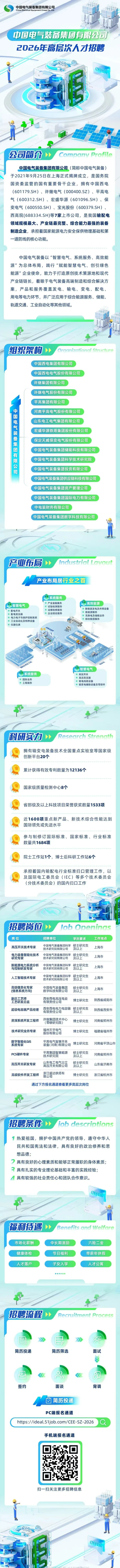 中国电气装备集团有限公司2026年高层次人才招聘 时间:2026-04-01 11:52 作者:吴老师 半月讲坛温馨提示:信息均转载自官方网站,仅供参考,不构成相关服务。其最终解释权归相关单位所有,如对信息有疑问,请直接与相关单位联系。转载目的在于信息传递,我司不承担此类稿件其他行为的连带责任,如有侵权或需删除请联系我们。因此带来的不便敬请谅解! (责任编辑:吴老师) 上一篇:中国电气装备许继集团、许继电气2026年春季校园招聘 下一篇:中国电气装备集团储能科技有限公司2026年社会招聘
