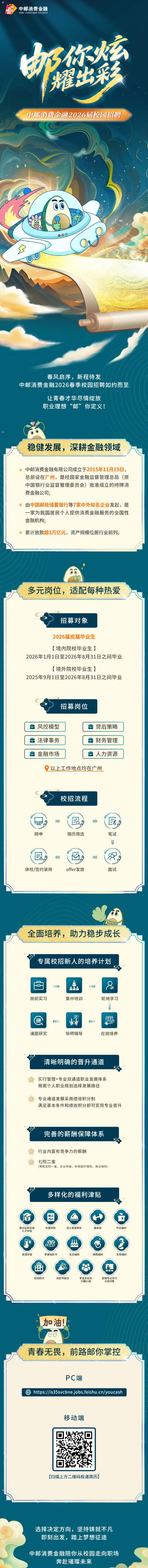 中邮消费金融2026春季校园招聘 时间:2026-04-13 09:59 作者:吴老师 半月讲坛温馨提示:信息均转载自官方网站,仅供参考,不构成相关服务。其最终解释权归相关单位所有,如对信息有疑问,请直接与相关单位联系。转载目的在于信息传递,我司不承担此类稿件其他行为的连带责任,如有侵权或需删除请联系我们。因此带来的不便敬请谅解! (责任编辑:吴老师) 上一篇:中建六局投资公司综合办公室招聘 下一篇:三峡能源启动2026年春季校园招聘
