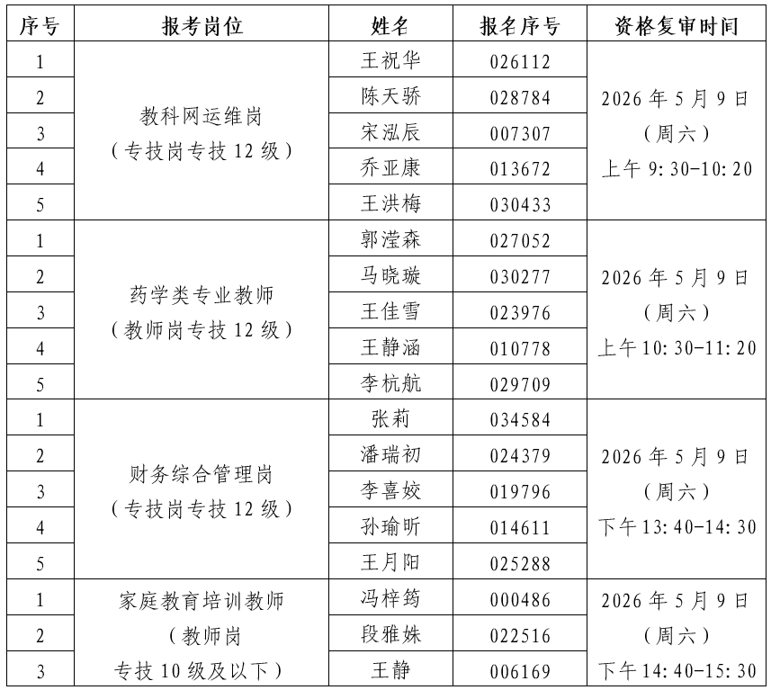 按照《天津开放大学2026年第一批公开招聘方案(中级及以下专业技术岗位)》,现将我校2026年第一批公开招聘资格复审人员名单及相关事宜通知如下。