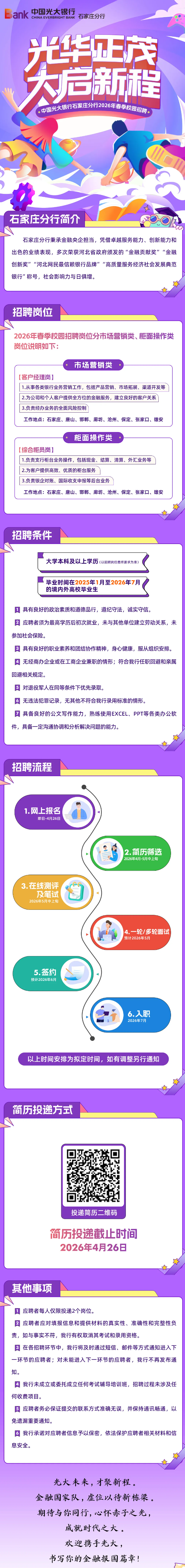 中国光大银行石家庄分行2026年春季校园招聘公告