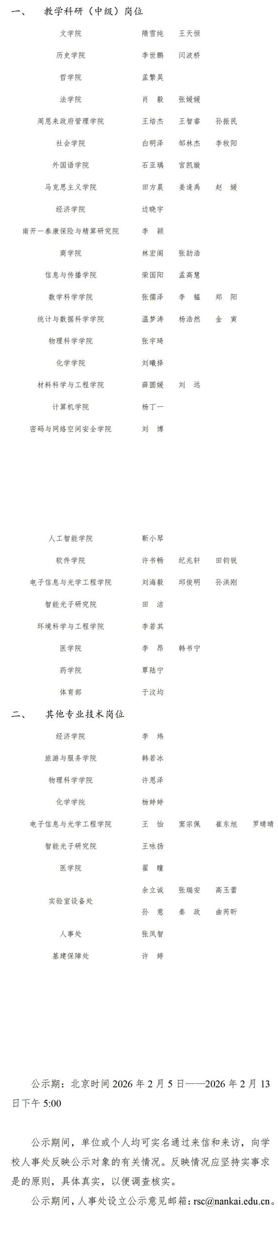 南开大学2026年教职工公开招聘拟聘用人选公示