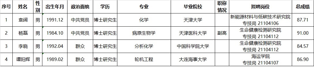 按照《天津市事业单位公开招聘人员实施办法(试行)》(津人社局发[2011]10号)要求,现将天津理工大学2021年公开招聘部分岗位拟聘人员予以公示。