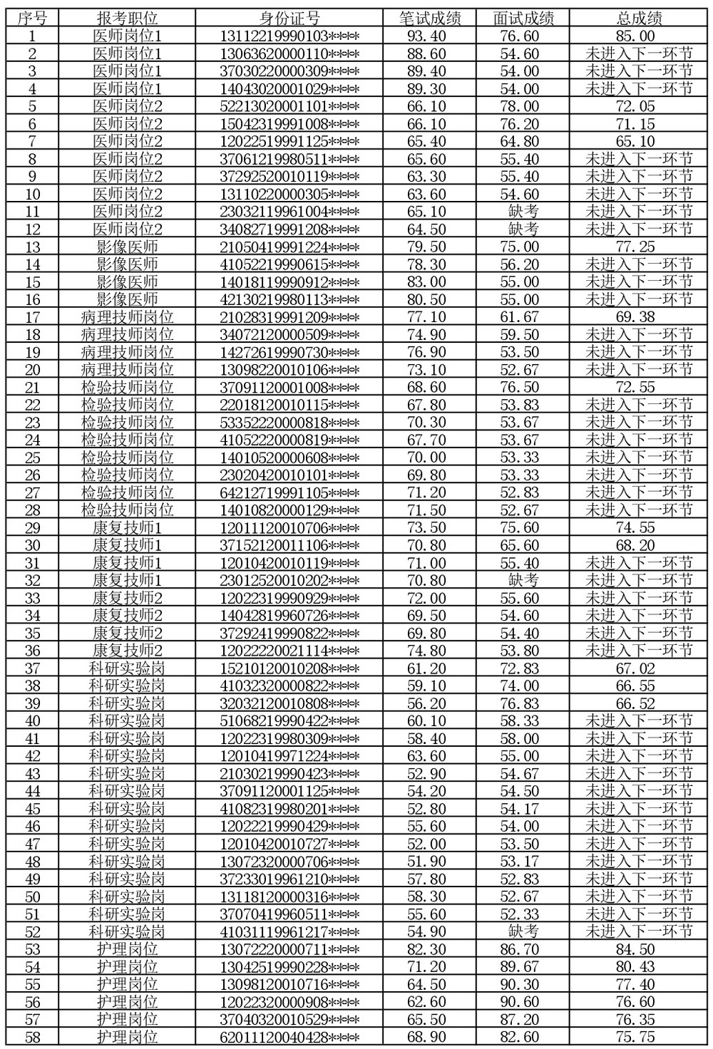 - 天津医科大学肿瘤医院2026年博士等人员公开招聘面试成绩及总成