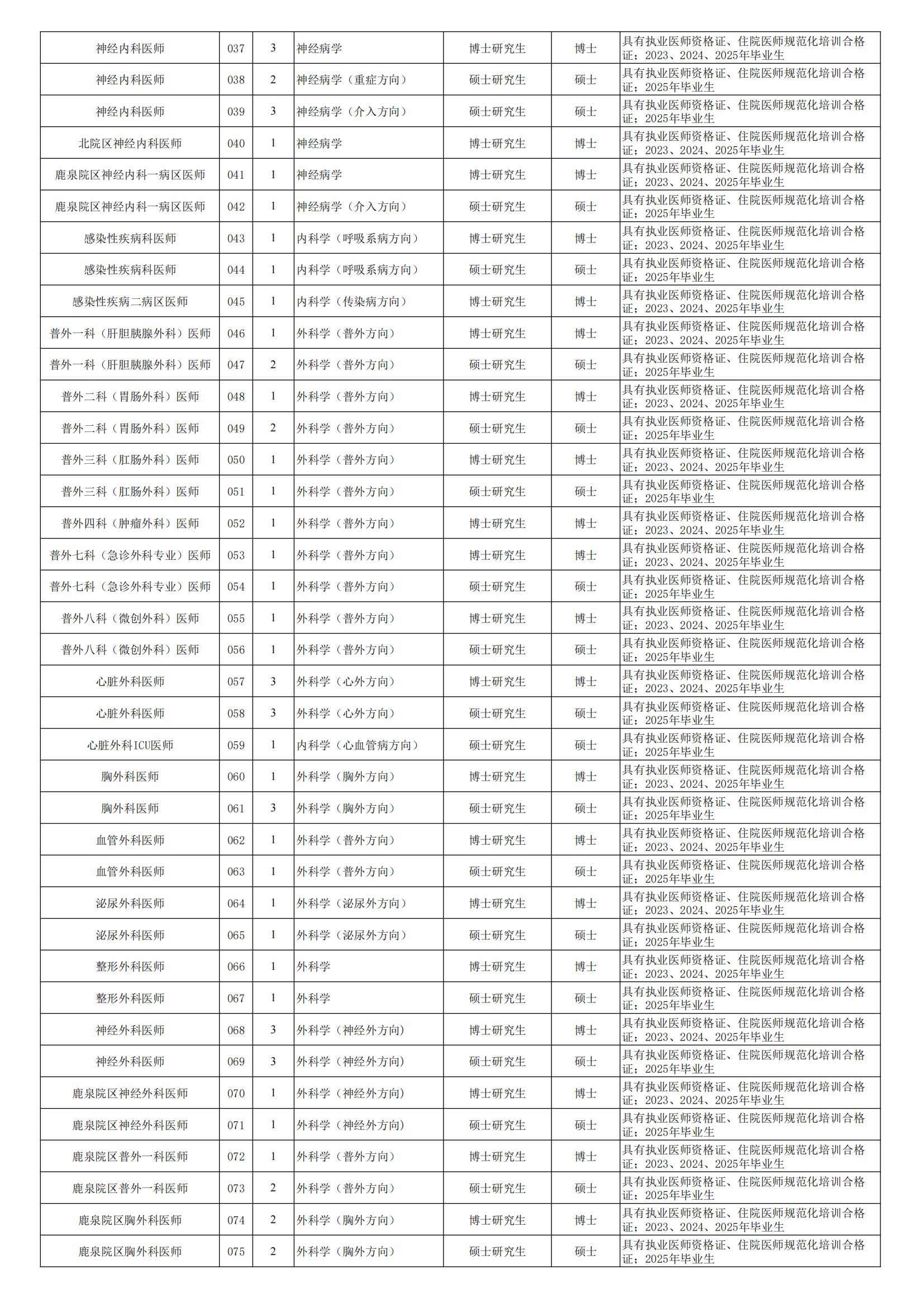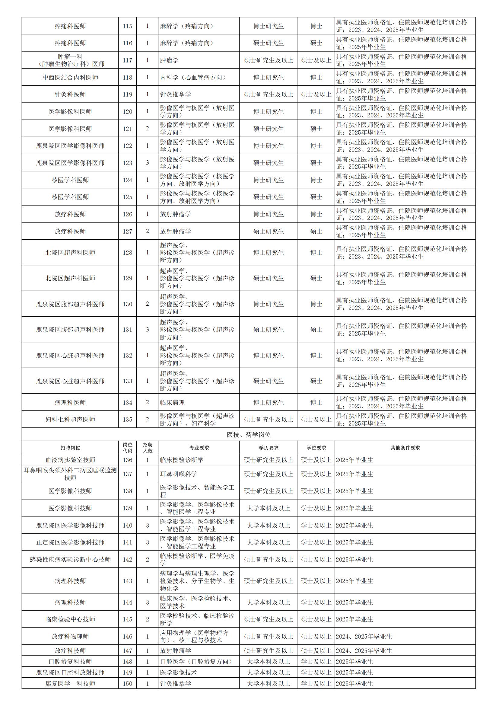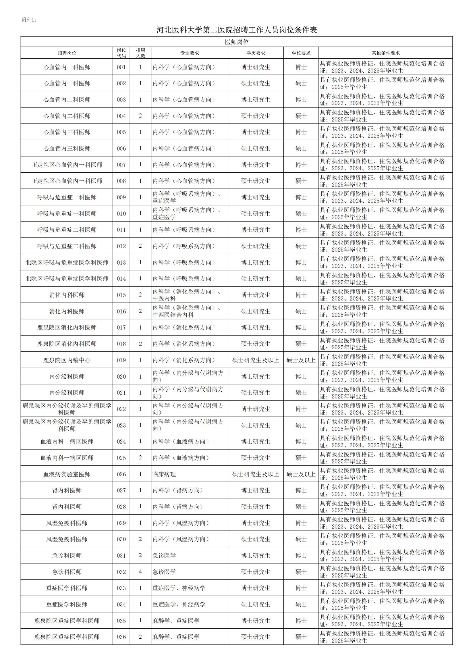 附件1.河北医科大学第二医院公开招聘工作人员岗位条件表