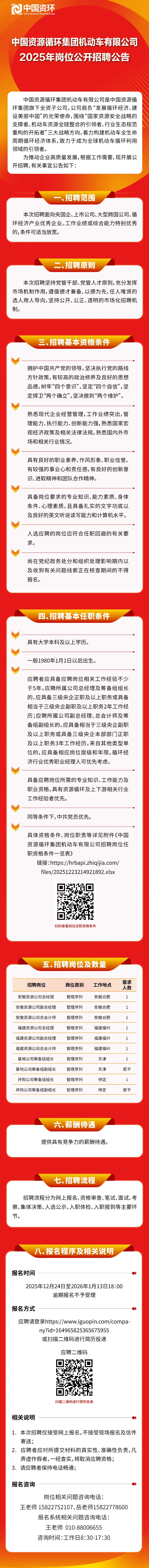 中国资源循环集团机动车有限公司2025年岗位公开招聘公告 时间:2026-01-09 14:36 来源:未知 作者:吴老师 点击:次 半月讲坛温馨提示:信息均转载自官方网站,仅供参考,不构成相关服务。其最终解释权归相关单位所有,如对信息有疑问,请直接与相关单位联系。转载目的在于信息传递,我司不承担此类稿件其他行为的连带责任,如有侵权或需删除请联系我们。因此带来的不便敬请谅解! (责任编辑:吴老师) 上一篇:2026年招商银行总行私人银行部社会招聘启事 下一篇:天津大学冯骥才博物馆招聘启事
