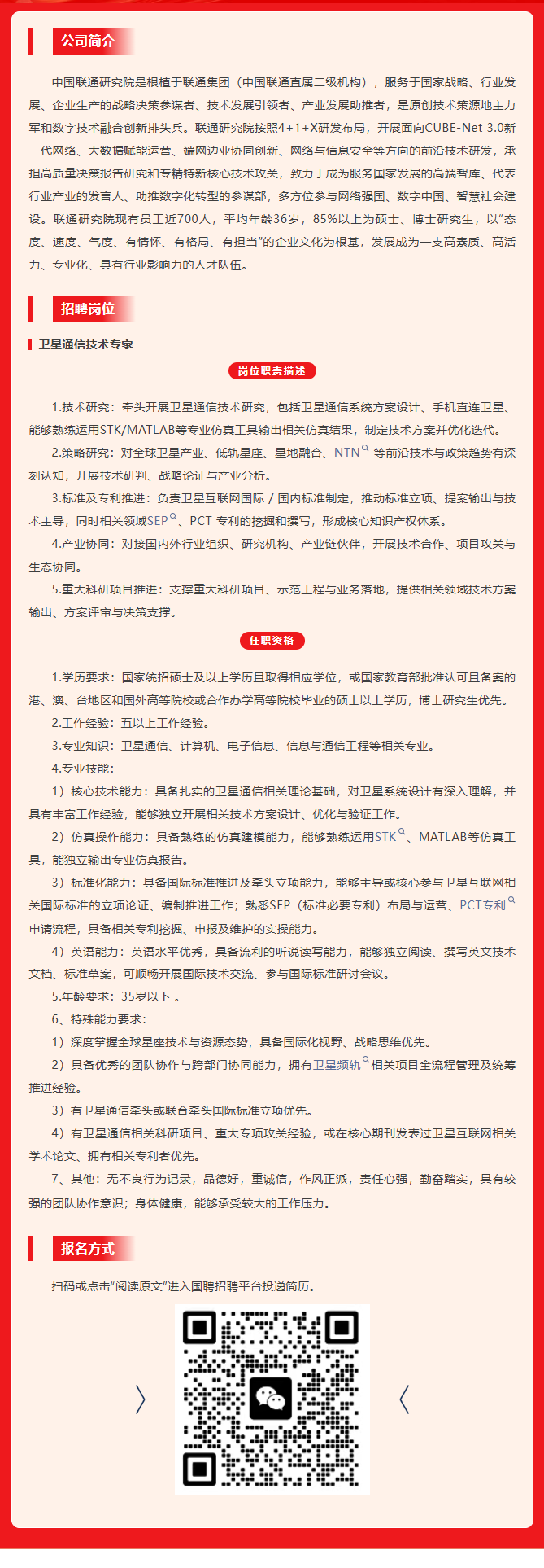中国联合网络通信有限公司研究院社招岗位 时间:2026-03-31 16:39 作者:吴老师 半月讲坛温馨提示:信息均转载自官方网站,仅供参考,不构成相关服务。其最终解释权归相关单位所有,如对信息有疑问,请直接与相关单位联系。转载目的在于信息传递,我司不承担此类稿件其他行为的连带责任,如有侵权或需删除请联系我们。因此带来的不便敬请谅解! (责任编辑:吴老师) 上一篇:中国电信2026春季校园招聘 下一篇:数据所(兴唐公司)2026校园招聘