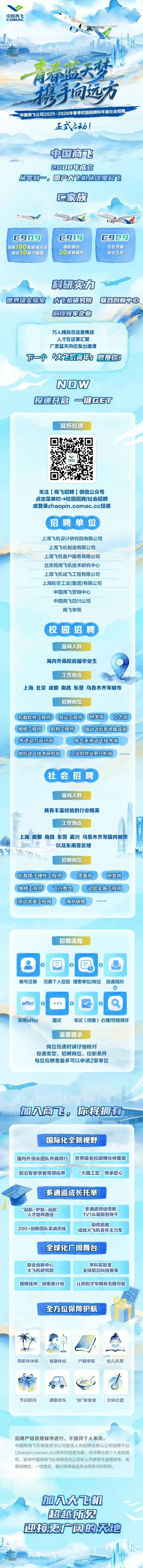 中国商飞公司2025-2026年春季校园招聘和年度社会招聘 时间:2026-04-01 14:42 作者:吴老师 半月讲坛温馨提示:信息均转载自官方网站,仅供参考,不构成相关服务。其最终解释权归相关单位所有,如对信息有疑问,请直接与相关单位联系。转载目的在于信息传递,我司不承担此类稿件其他行为的连带责任,如有侵权或需删除请联系我们。因此带来的不便敬请谅解! (责任编辑:吴老师) 上一篇:平安产险2026春招正式启动 下一篇:中国宝武2026届毕业生校园招聘