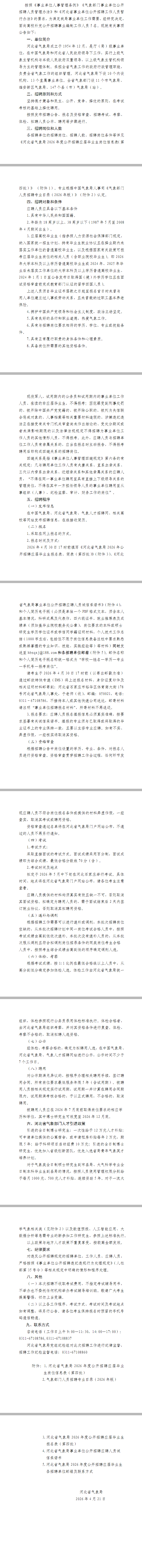 河北省气象局2026年度公开招聘应届毕业生公告(第2606号)