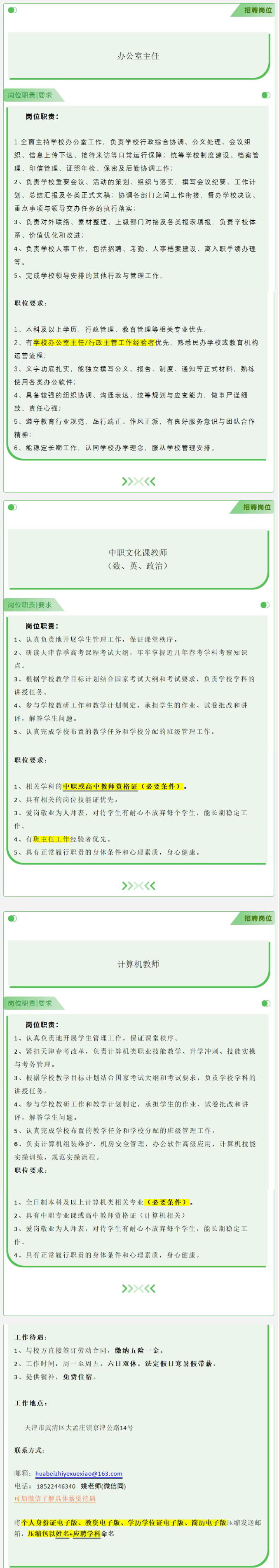 华北(天津)职业学校招聘 时间:2026-04-28 10:45 作者:吴老师 半月讲坛温馨提示:信息均转载自官方网站,仅供参考,不构成相关服务。其最终解释权归相关单位所有,如对信息有疑问,请直接与相关单位联系。转载目的在于信息传递,我司不承担此类稿件其他行为的连带责任,如有侵权或需删除请联系我们。因此带来的不便敬请谅解! (责任编辑:吴老师) 上一篇:天津市东丽区英华学校招聘 下一篇:河北衡水英才学校初中部2026年招聘公告